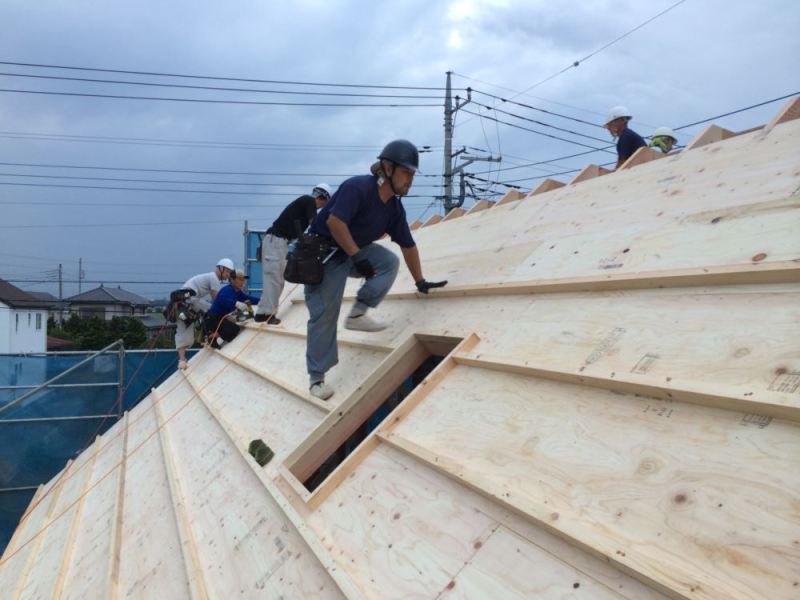 垂木の上に捨て野地板を施工してこの日は終了ー!