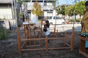 お子様も鍬入れを行い、「エイッエイッエイッ!」