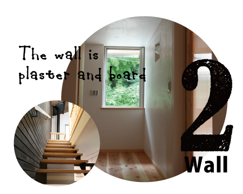 壁や天井の標準仕上げは漆喰壁です。呼吸する壁と言われ湿度を調節してくれるので、ジメジメした梅雨の時期でも空気がサラッとしていて、結露やカビの発生も防ぎます。消臭効果や耐火、耐熱性にも優れ、解体時には土に戻せる人と環境にやさしい材料なのです。アクセント壁を入れるのもオススメ!
