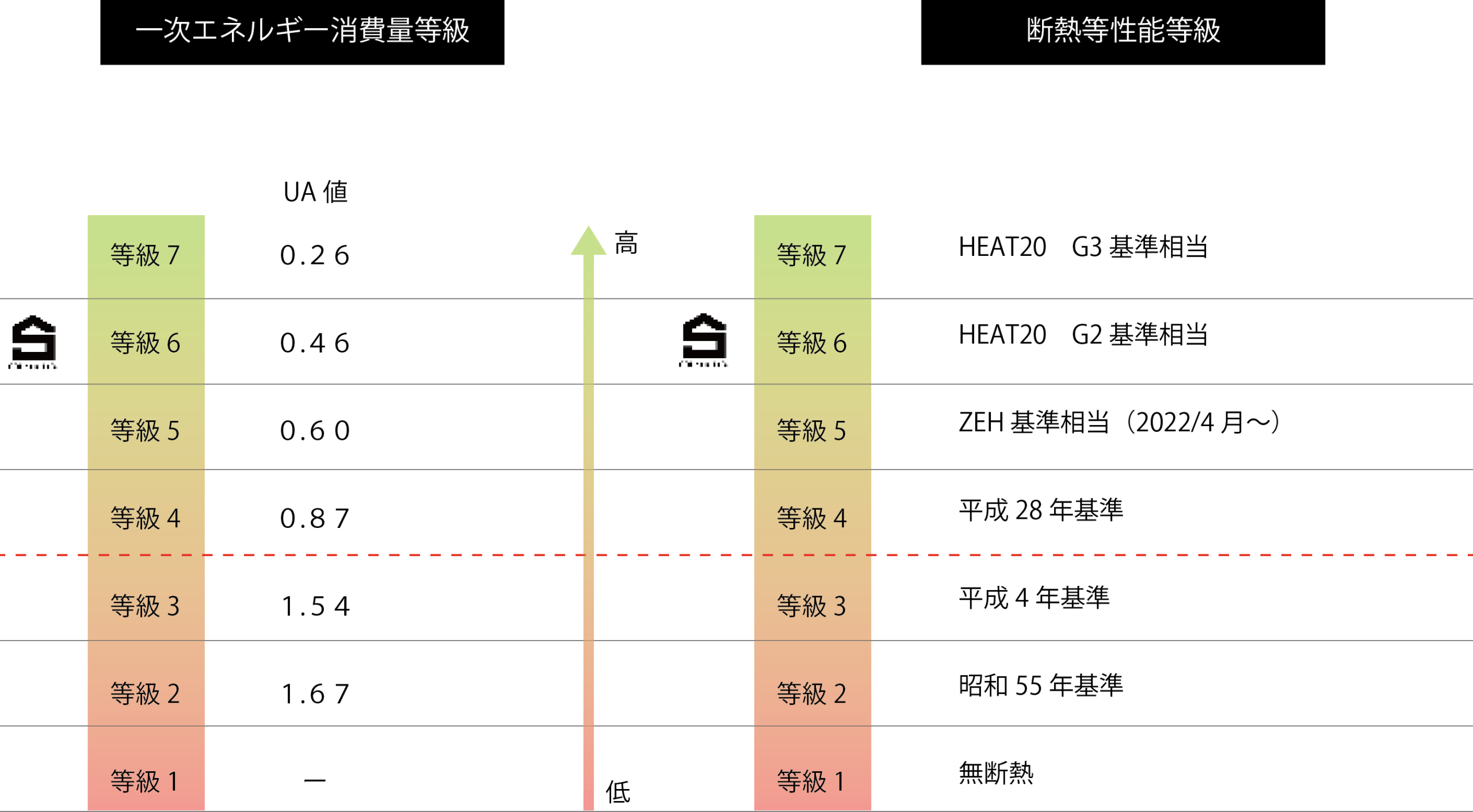 省エネ基準とは住宅の省エネルギー性能の水準を定めたもので、その等級によって住宅の性能を見ることができます。SOUKENの住宅は高等級を実現する高性能住宅です。