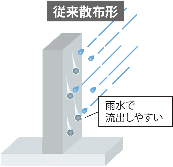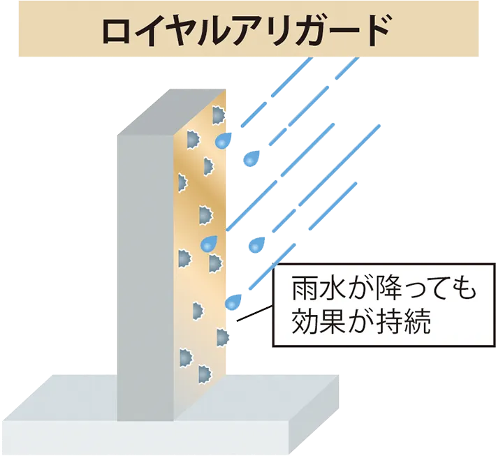 塗料に内包された防蟻成分が塗膜のミクロな穴から徐々に表面へ移行します。性能の発揮と持続性の両立が可能。
