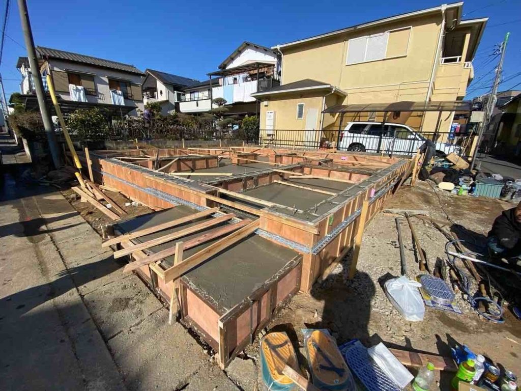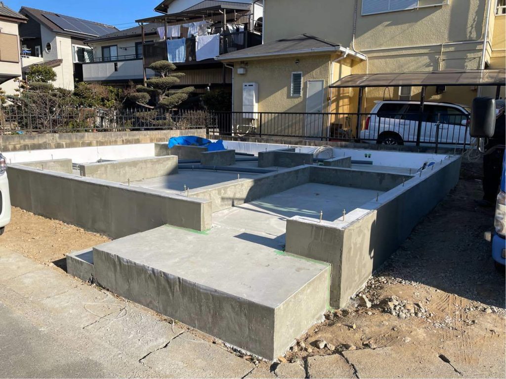 ベタ基礎一体打ち工法とは、基礎を一度に打設する工法で、打ち継ぎ目(コールドジョイント)を作らないため、基礎全体がより強固で耐久性の高い構造となります。