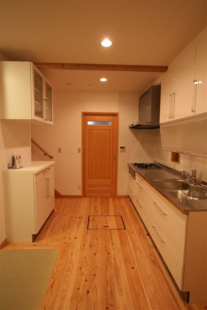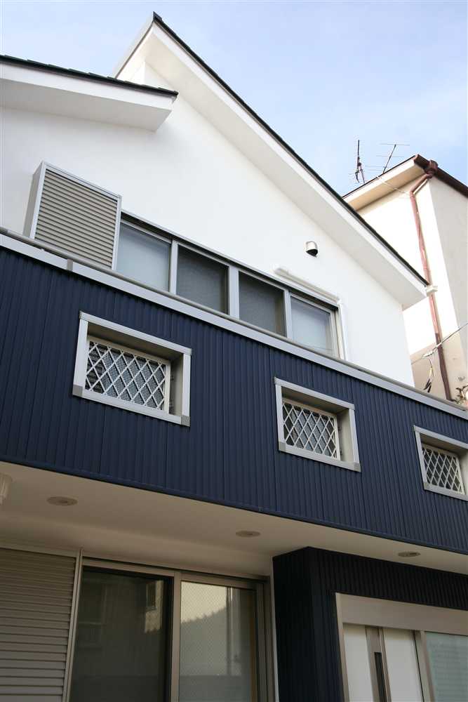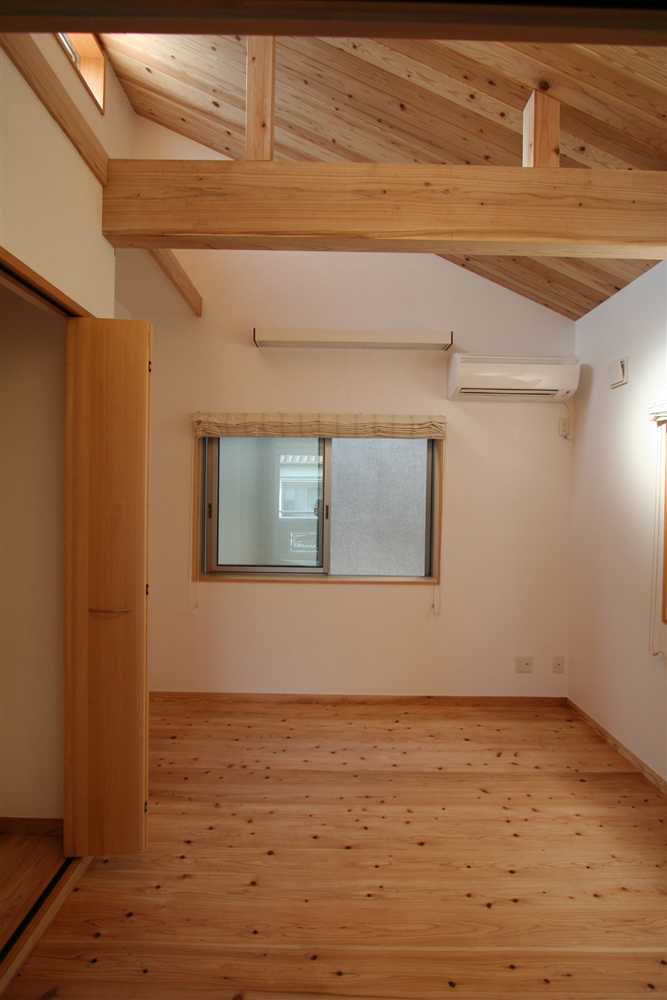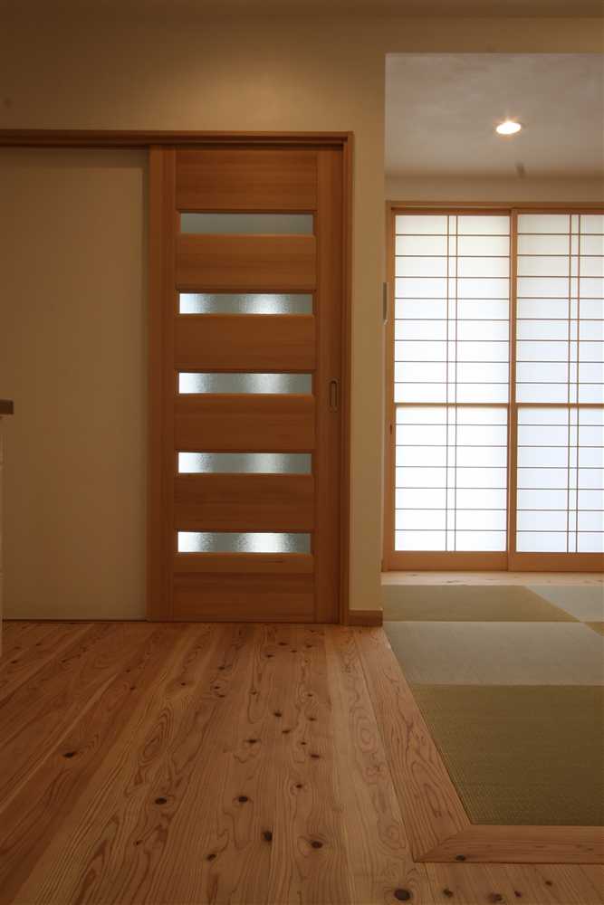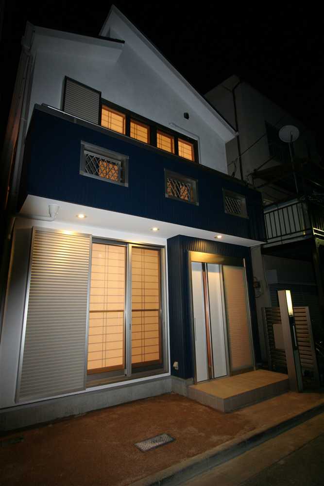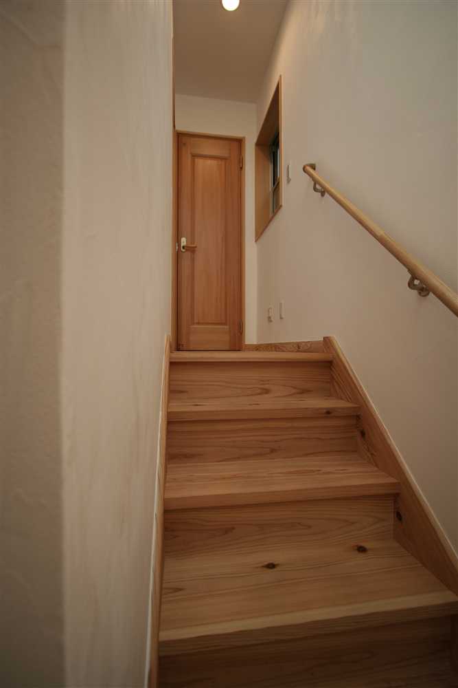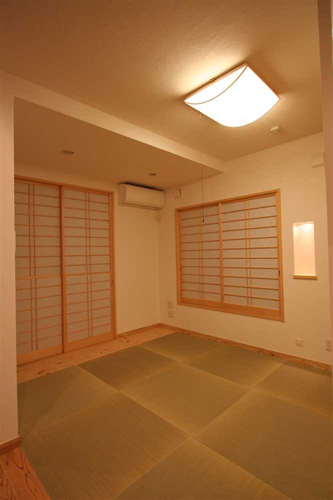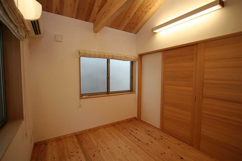 内装に使用したほたて漆喰は、調湿・消臭効果があり、健康と環境に優しい塗り壁材です。コテ仕上げの壁は、光が当たるとコテ跡に陰影ができ、安らぎの癒し効果をもたらします。床や2階の天井に用いた杉燻製熱処理材は、優しい肌触りや防腐、防虫効果があり、落ち着いた雰囲気を演出します。1階和室の照明、2階和室の琉球畳、外装のほたて漆喰+ガルバリウム鋼板のデザインなど、狭小住宅でありながら、個性溢れる家になりました。
