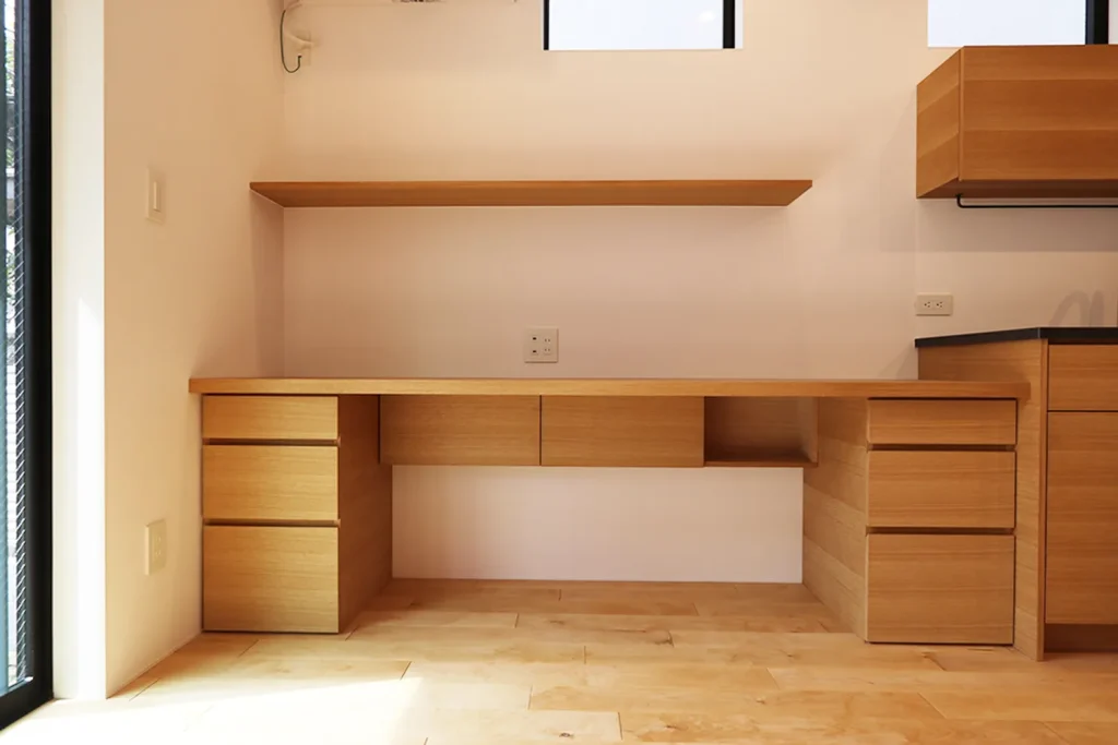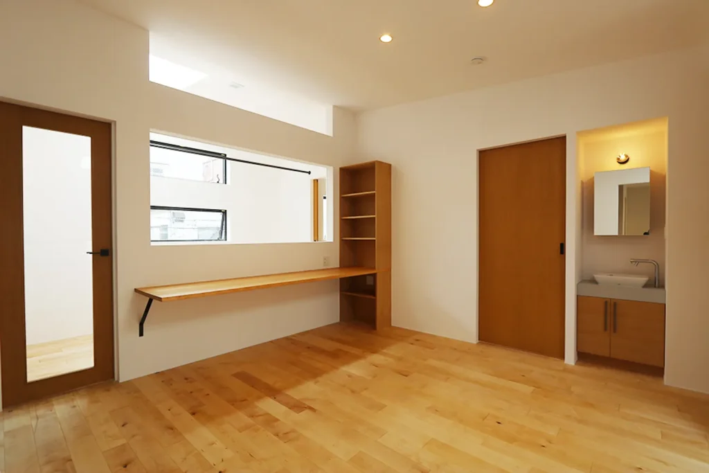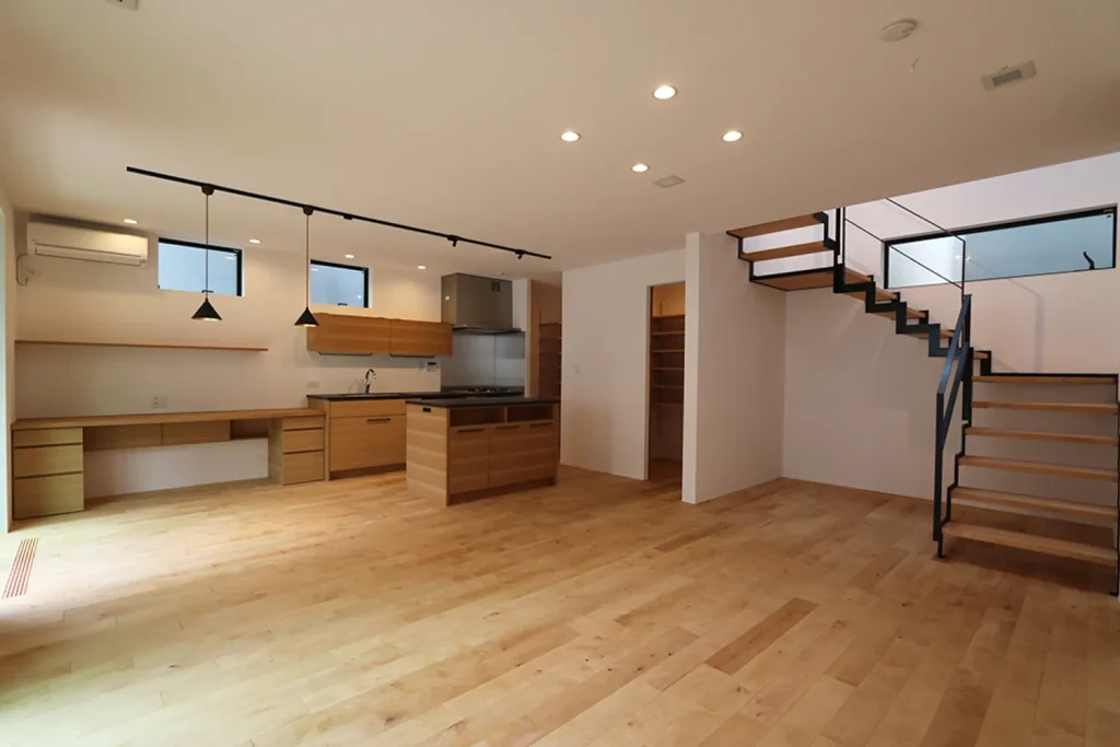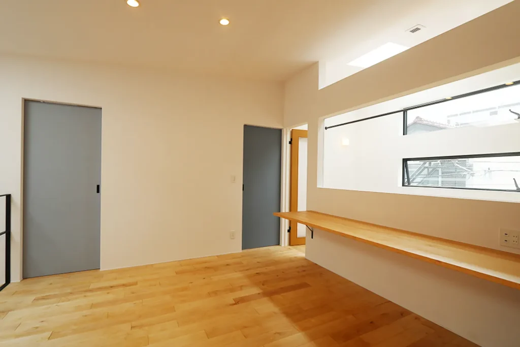 吹き抜けの階段をのぼるとそこはフリーホールとなっていて、子供たちが遊んだり、カウンターでパパがお仕事したりと自由な空間使いができます。