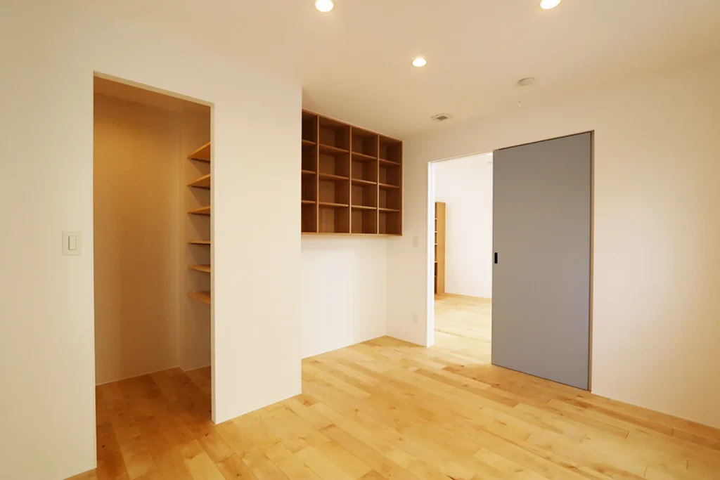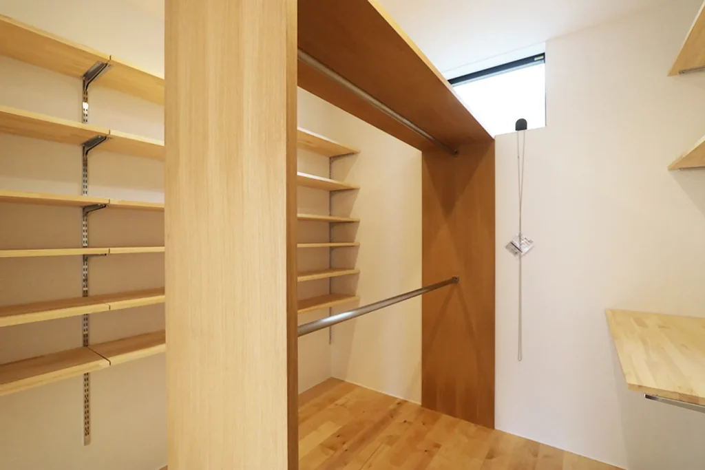 あえて室内にバルコニーを作ることで、家事効率もUP!家族みんなで使うファミリークローゼットも大容量です。機能性を確保しながら、開放的な大空間のある、ひろびろハウスに仕上がりました。