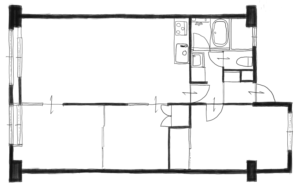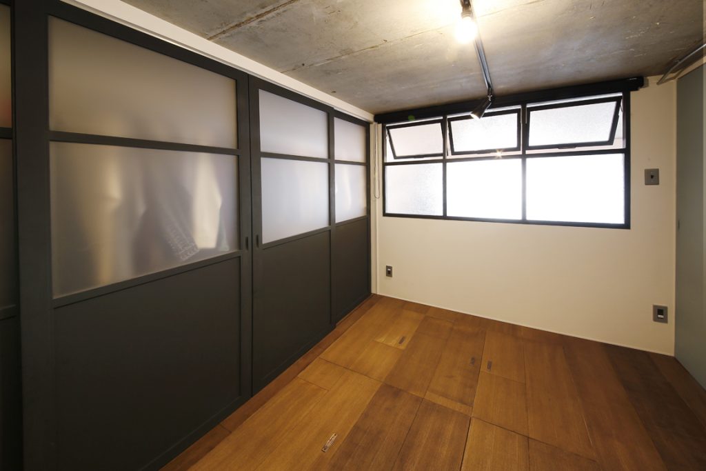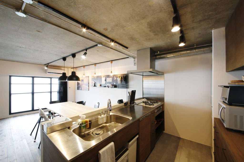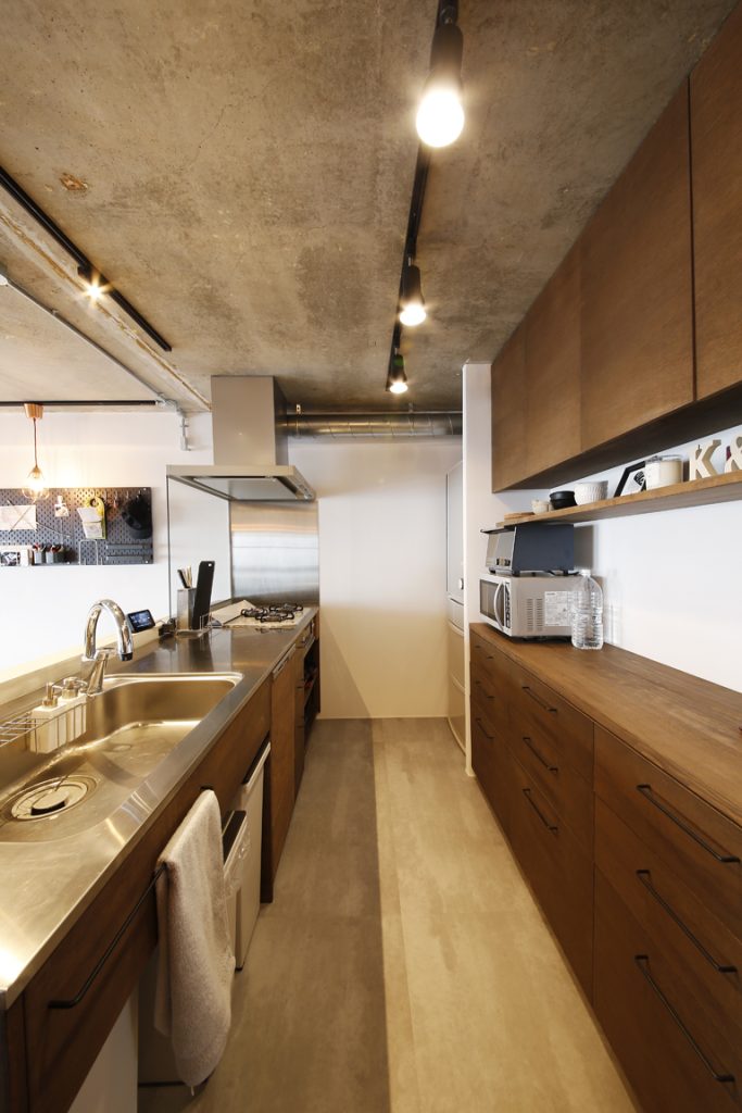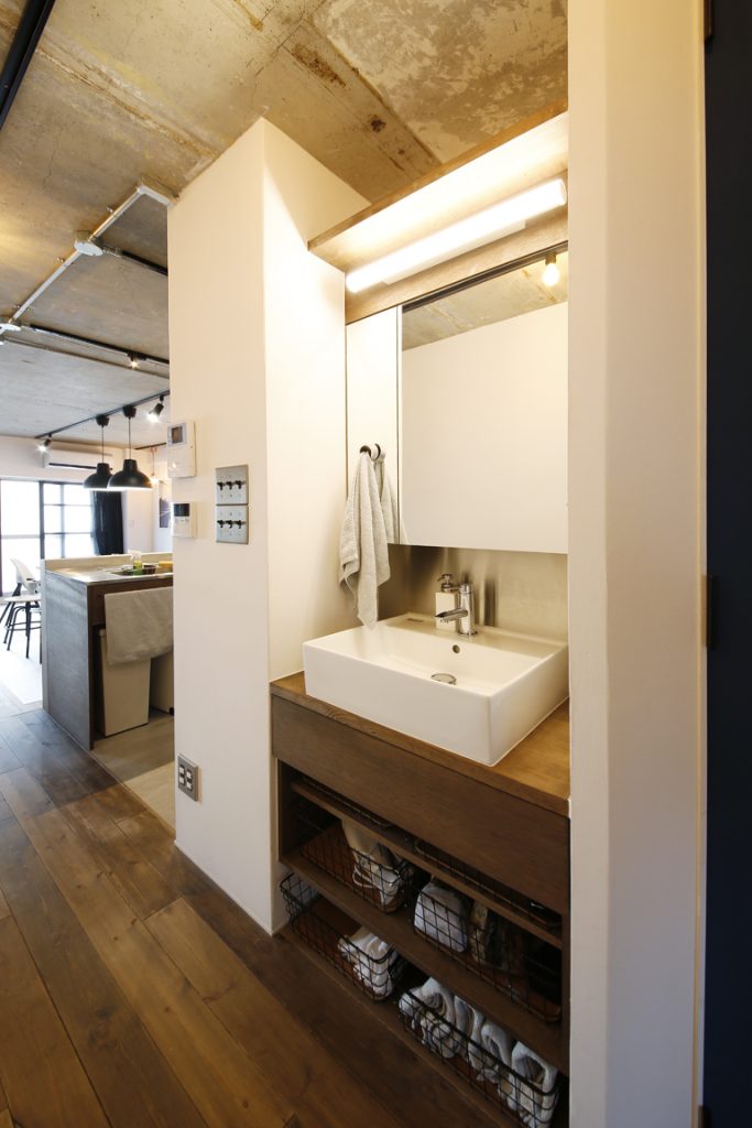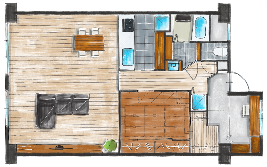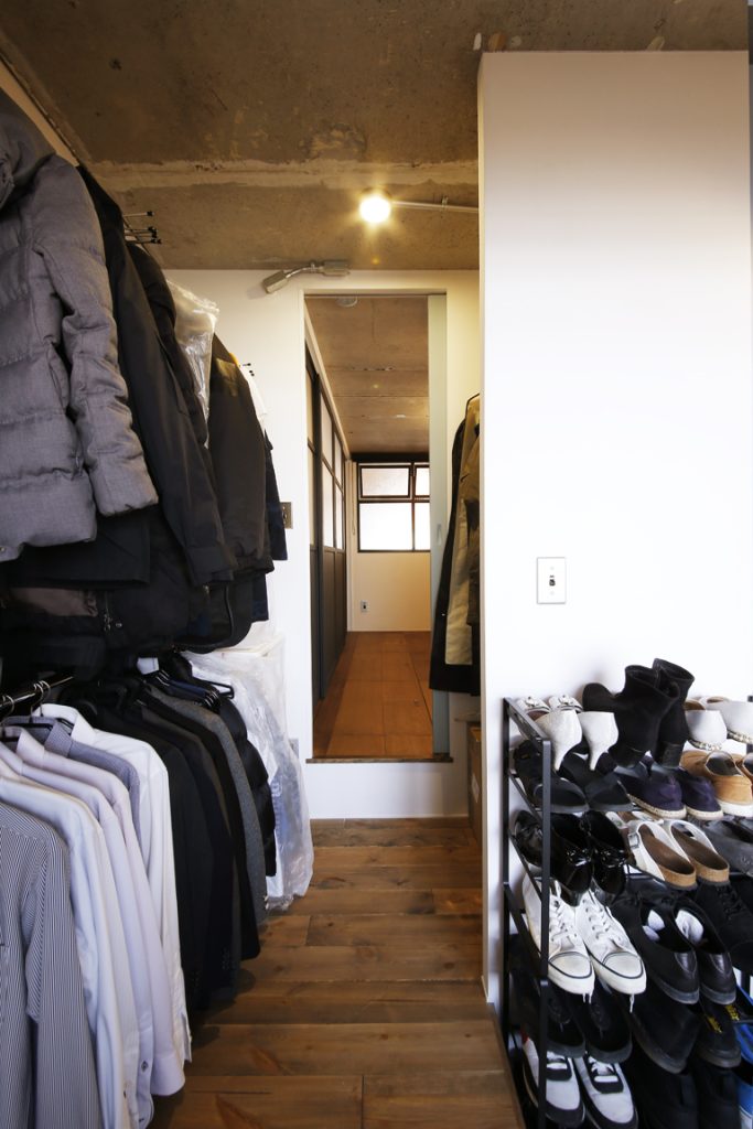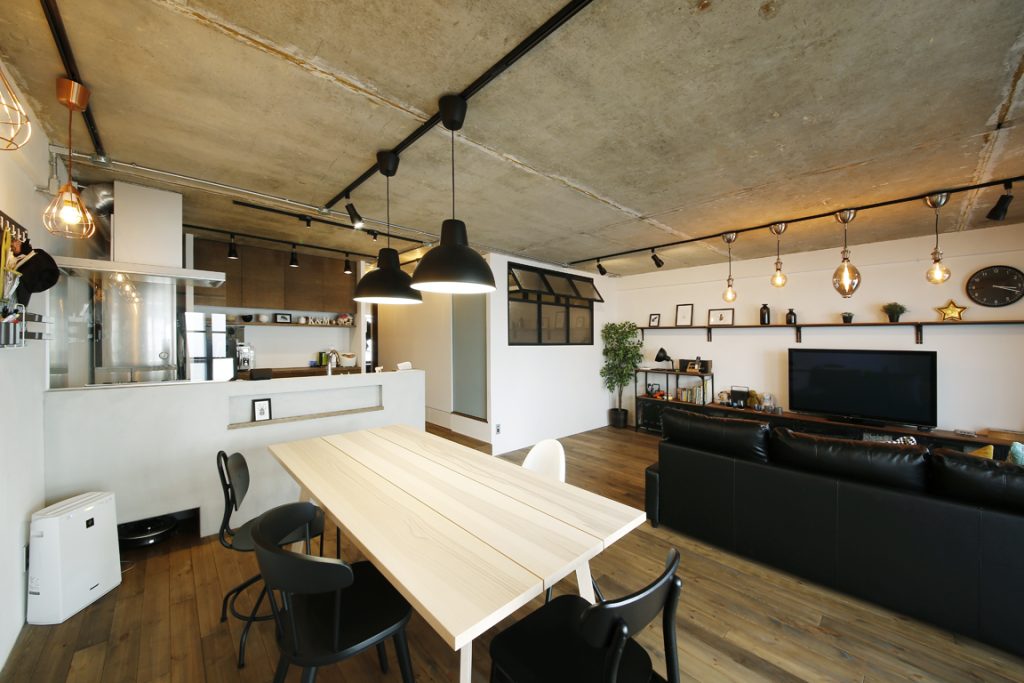 「限られた広さの中で将来的に可変性を持たせられる間取り」をコンセプトに始まったリノベーション。ビンテージの中古マンションをお探しのご主人ときれいなマンションがお好きな奥様。たくさんの物件をご案内させて頂き、お2人の納得がいく物件を見つけられました。広いLDKに実は収納たっぷりな小上がりの寝室スペース。家事のしやすい動線とデッドスペースを最大限に活用した収納で、限られた空間に広々リビングを実現しました。