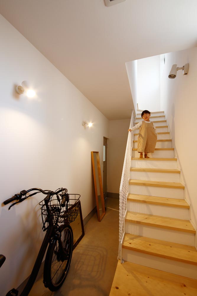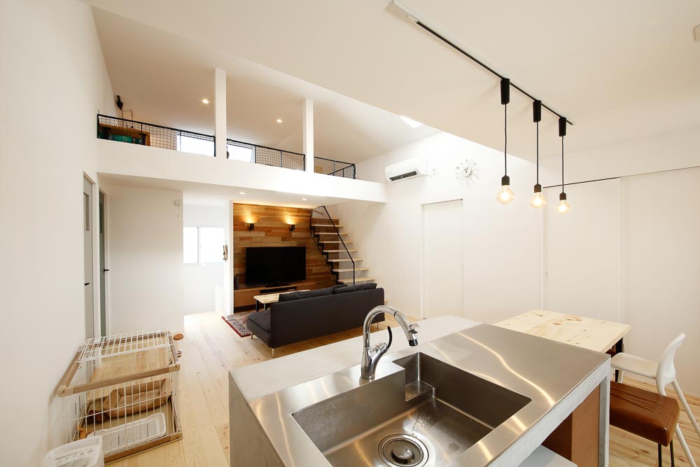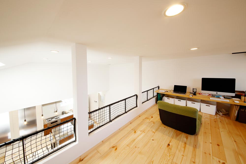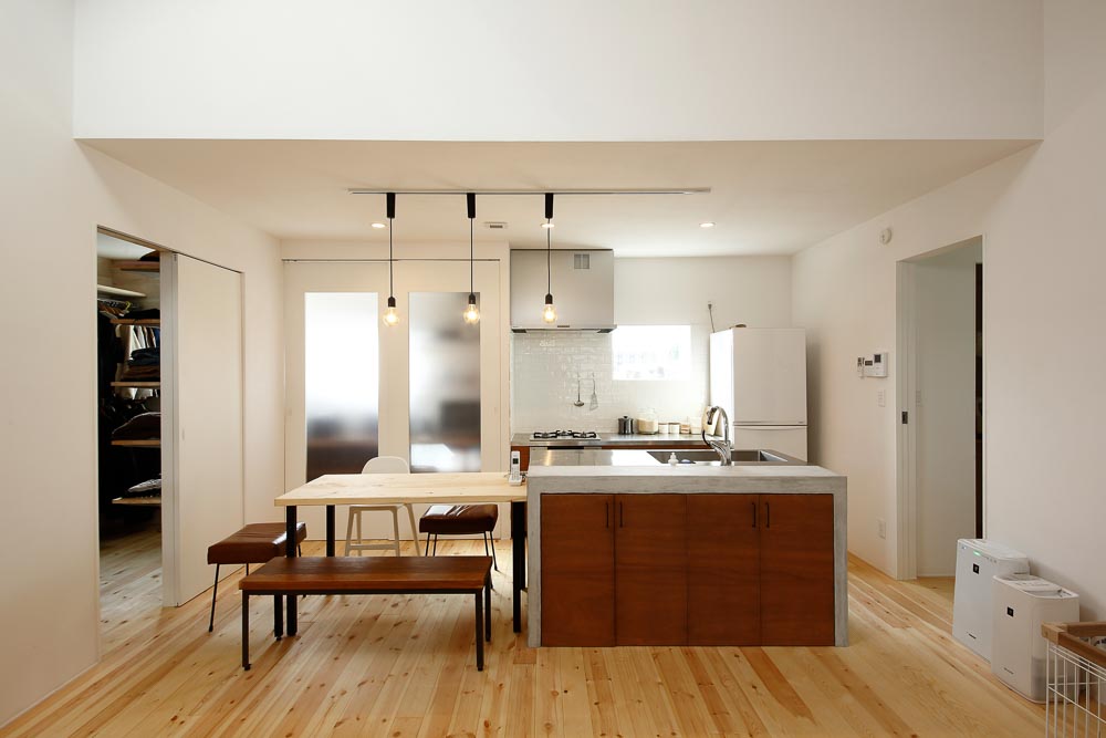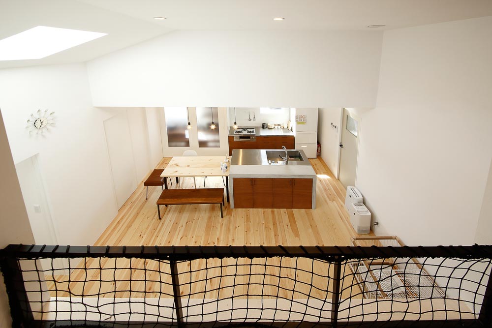 居住空間は大きなトップライトから部屋中に行き渡る陽の光が心地よく、リビングを介してどこへでも行ける間取りは子育てにもピッタリ。