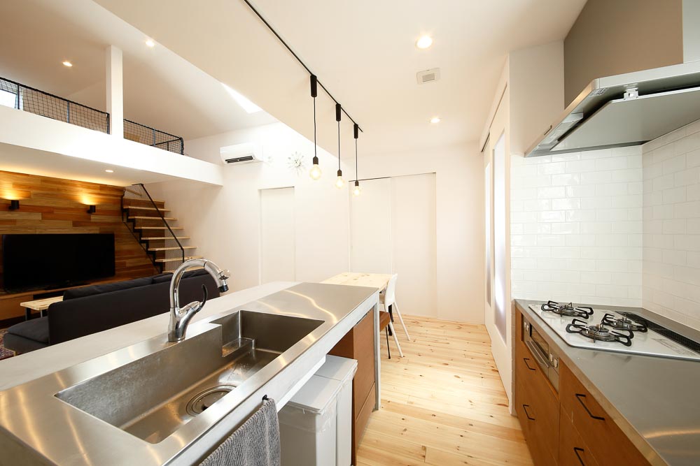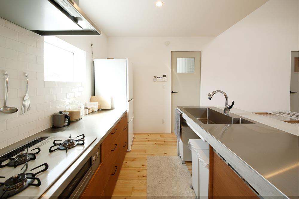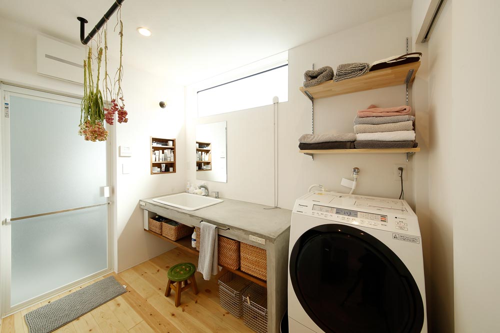 ランドリールームからファミリークローゼット、リビングがぐるぐると回遊できたり、キッチンの乱雑に見えがちな家電を隠せたりと、小技の光っています。