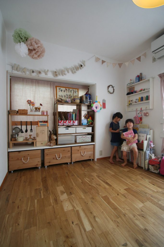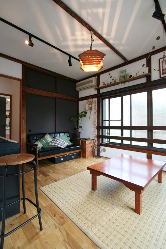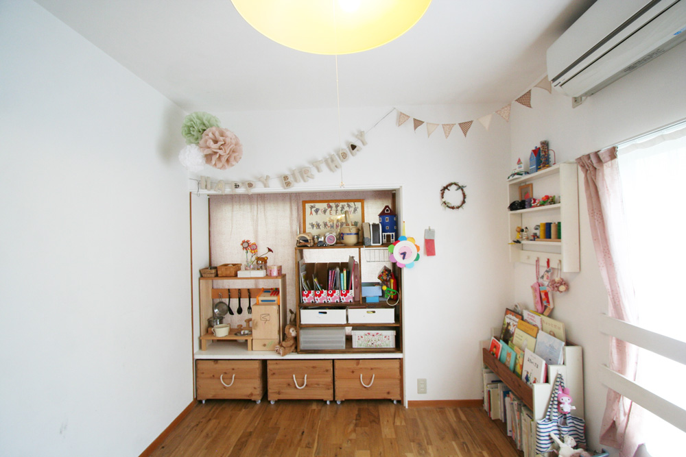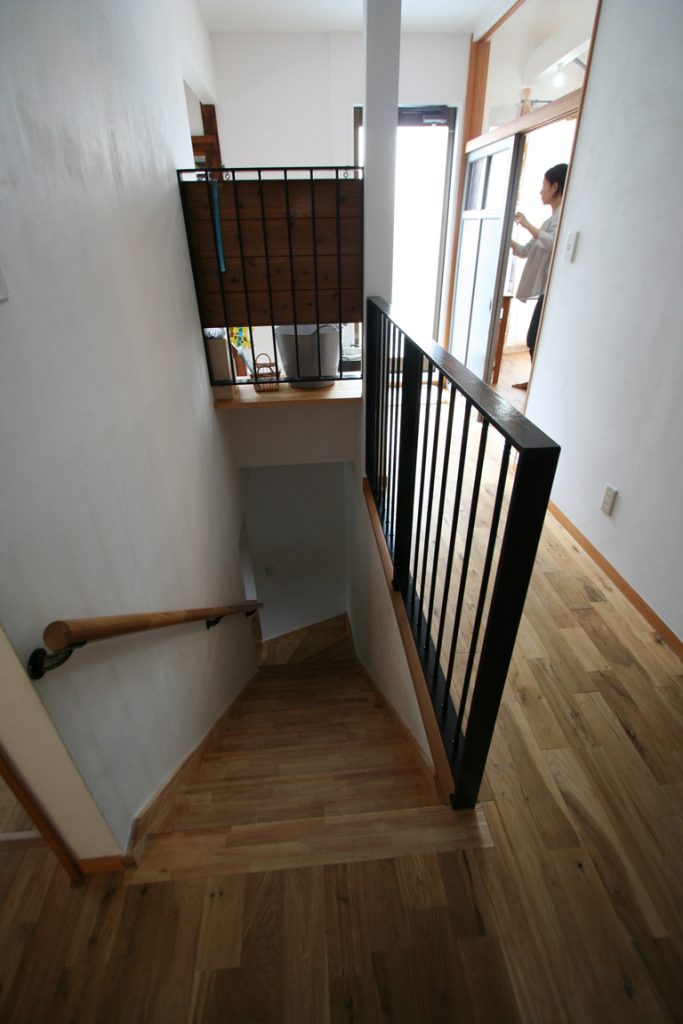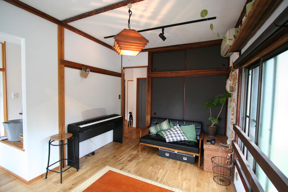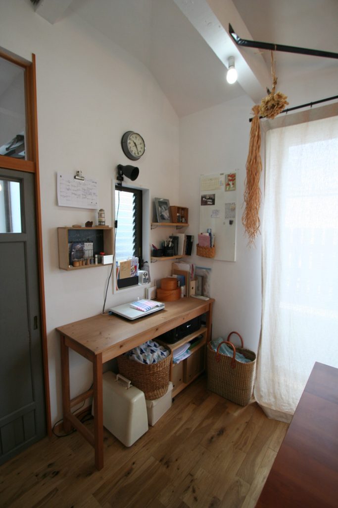 モルタル造りの洗面台、オークションで手に入れたレトロな建具、スイッチプレートやタオル掛けなどの小物などを設計に組み込んで、レトロな暖かい雰囲気を取り入れました。とりわけ築40 年以上の和室を残してリニューアルした多目的スペースはフラワーアレンジ教室を開いて賑わうことでしょう。天井を抜いて開放的なリビングキッチンの空間は、ステンレスとオークの組み合わせで、cafe スタイルに仕上がっています。